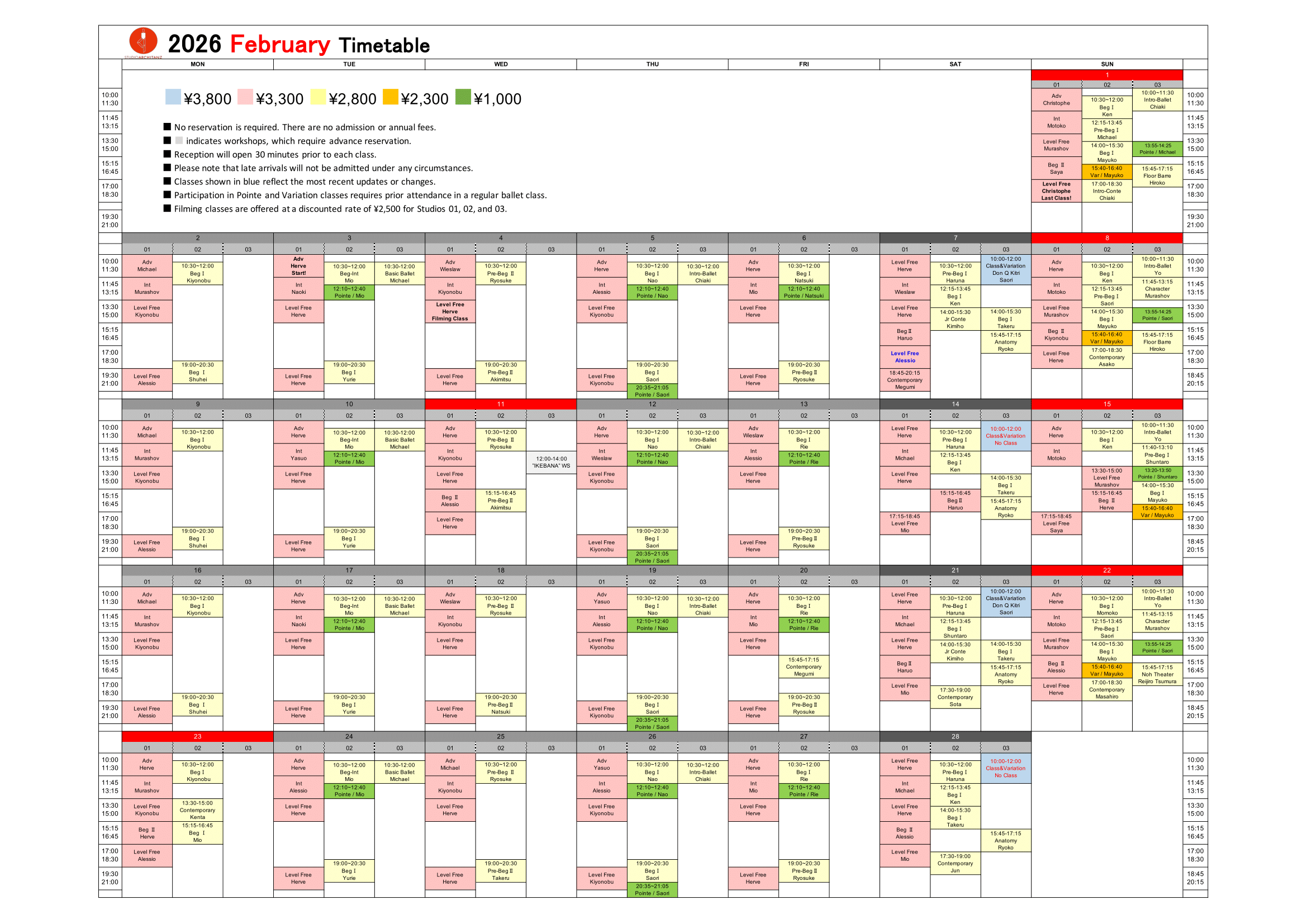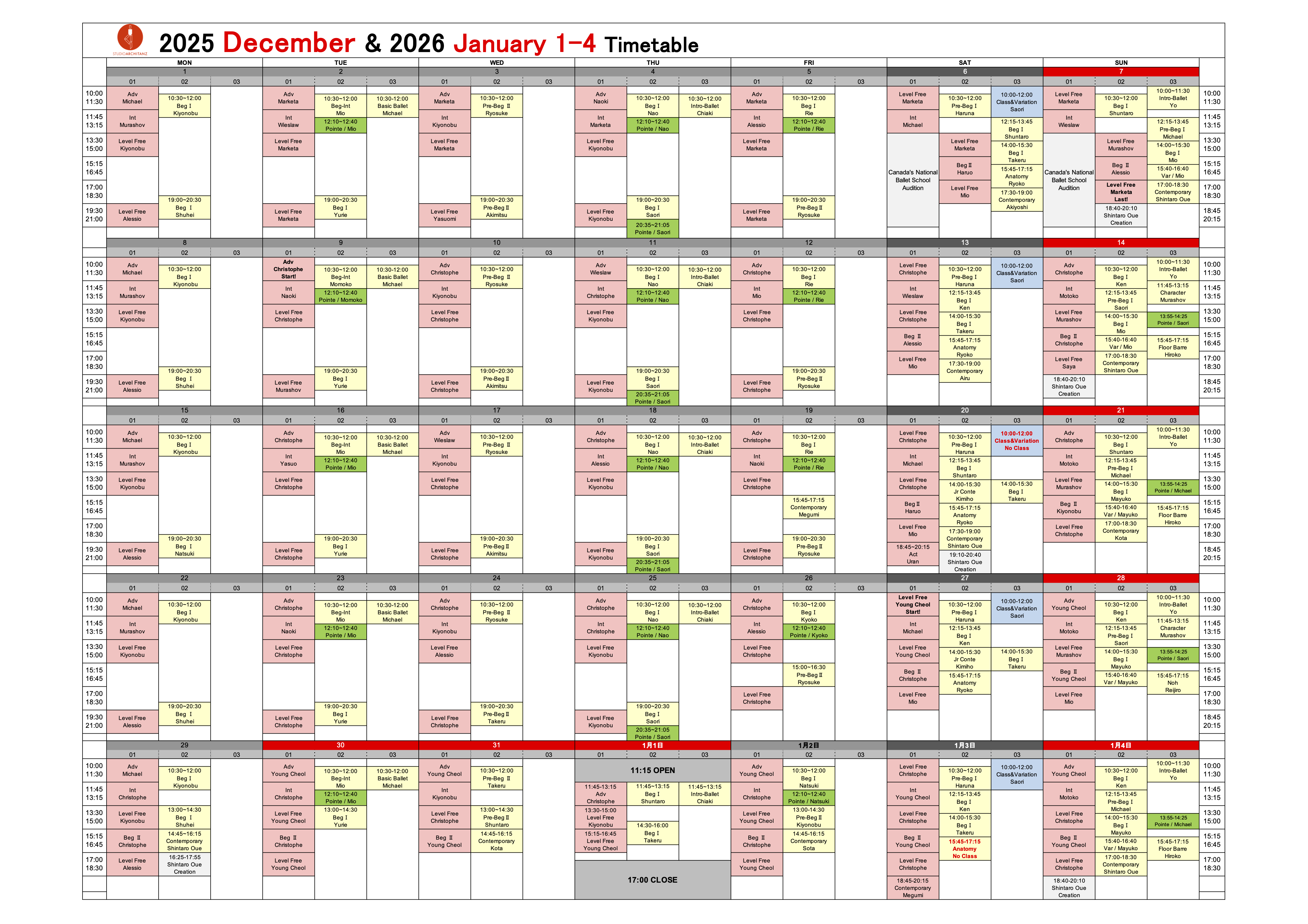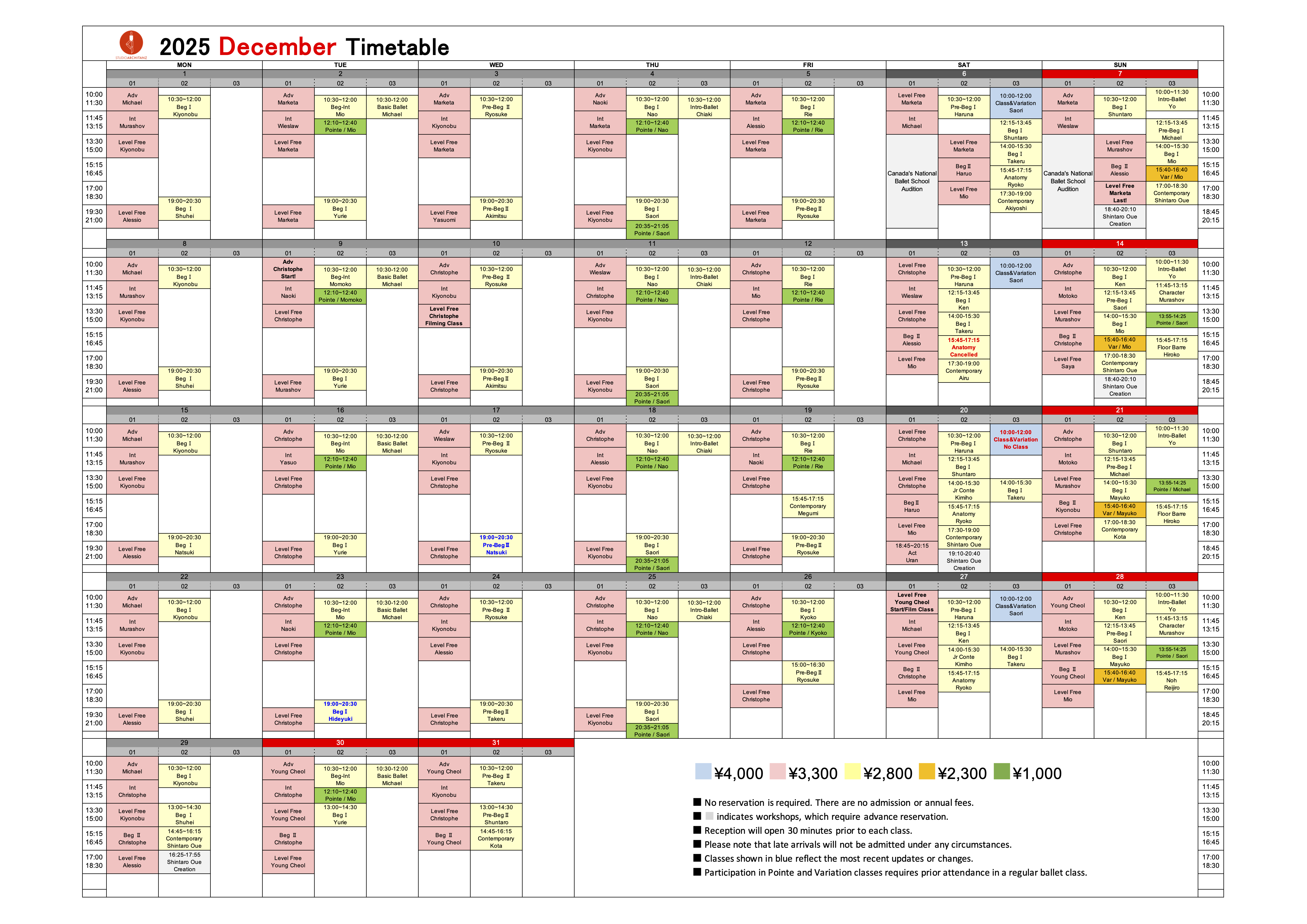 In addition to regularly scheduled classes, we hold special open classes with many international guest teachers and choreographers. You can learn and experience different contemporary styles from all over the world.
