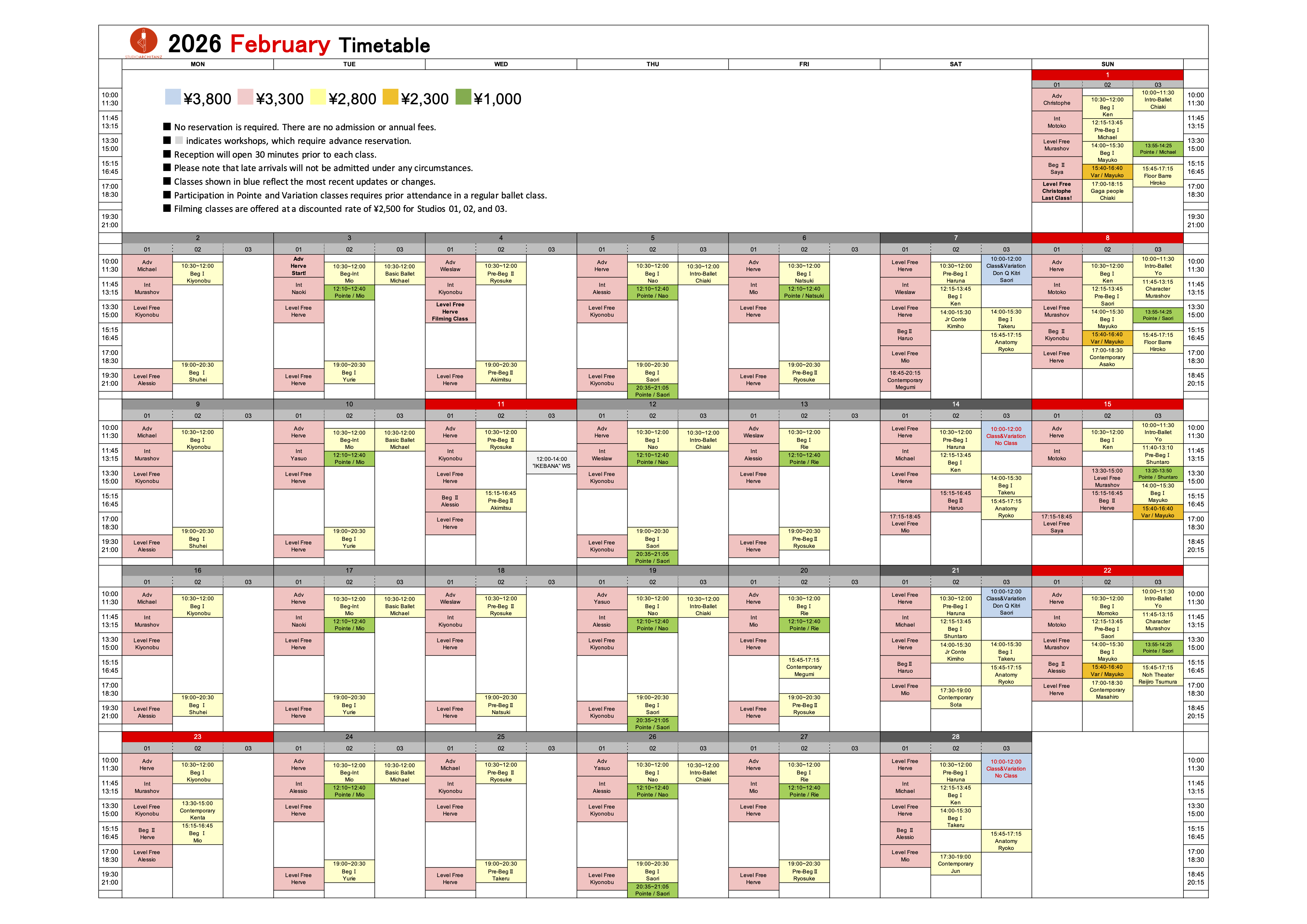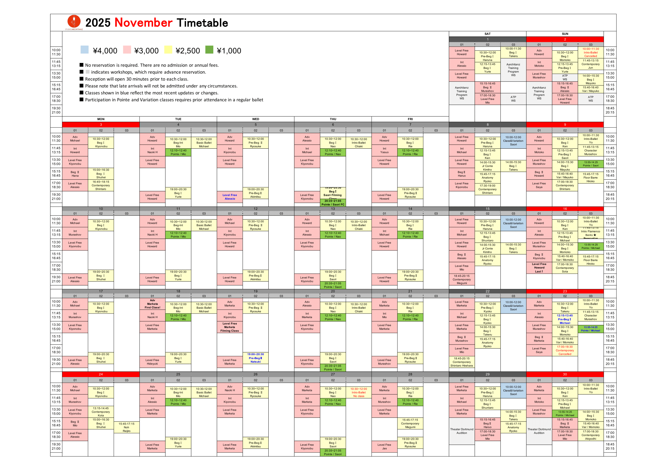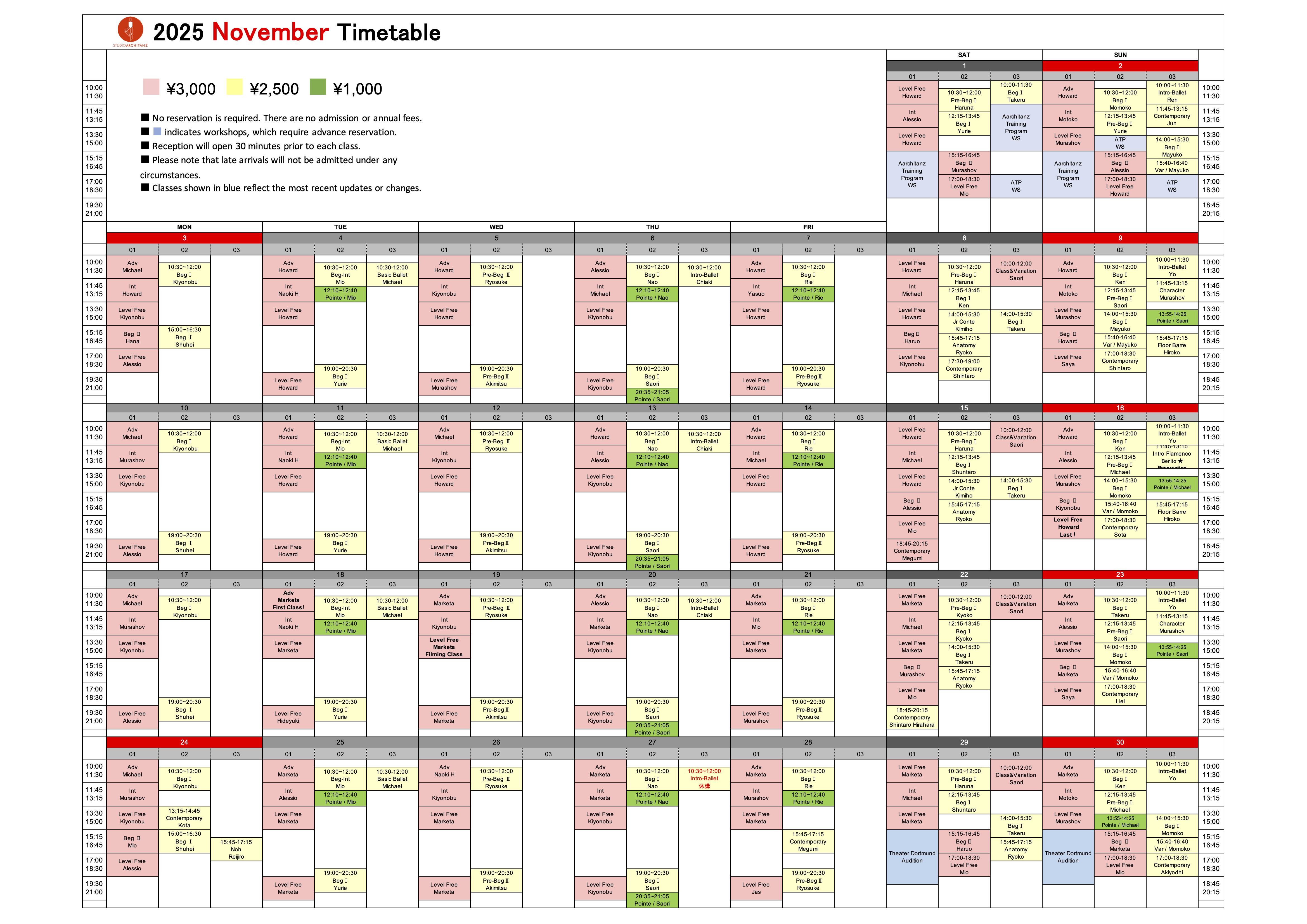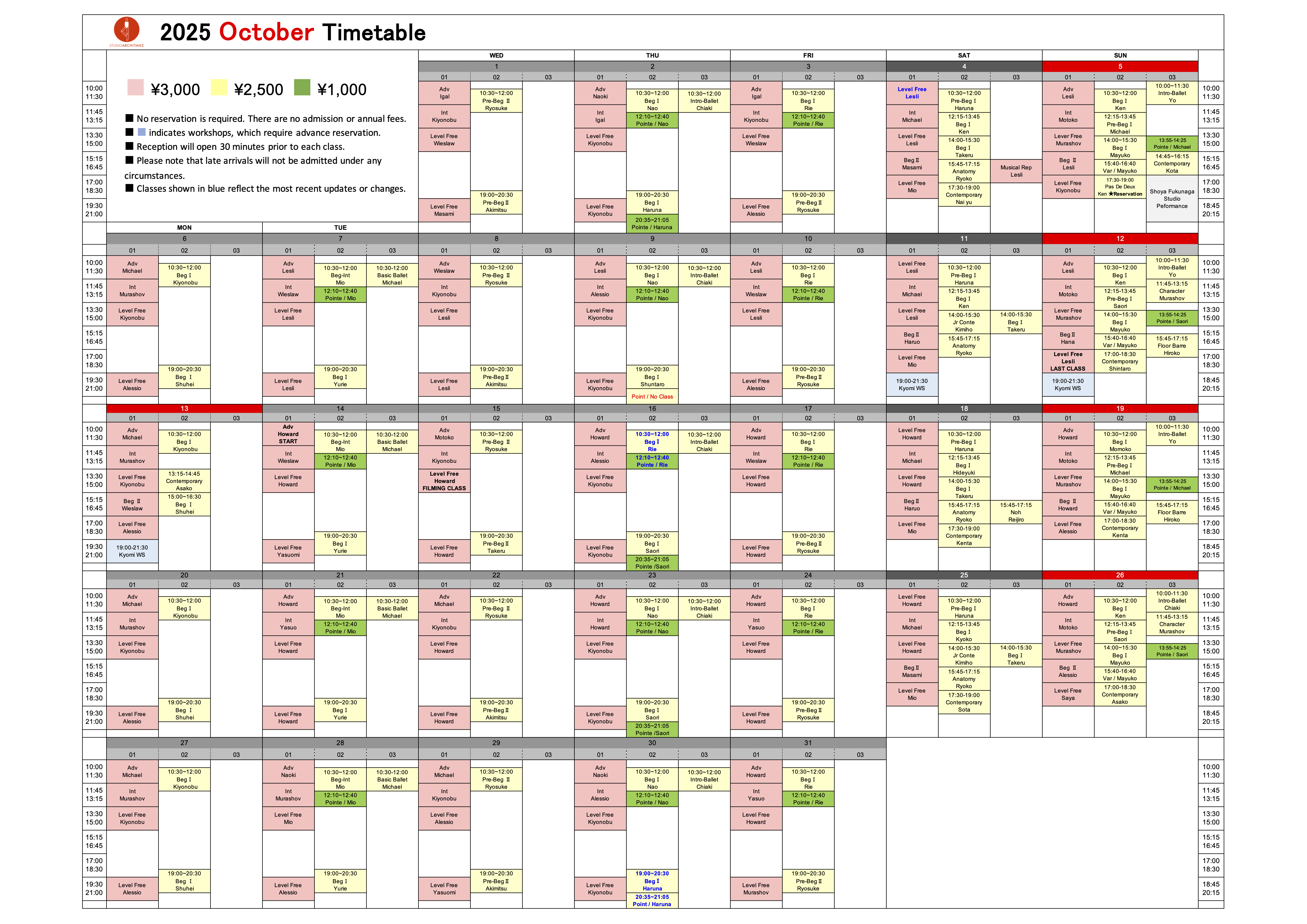 In addition to regularly scheduled classes, we hold special open classes with many international guest teachers and choreographers. You can learn and experience different contemporary styles from all over the world.