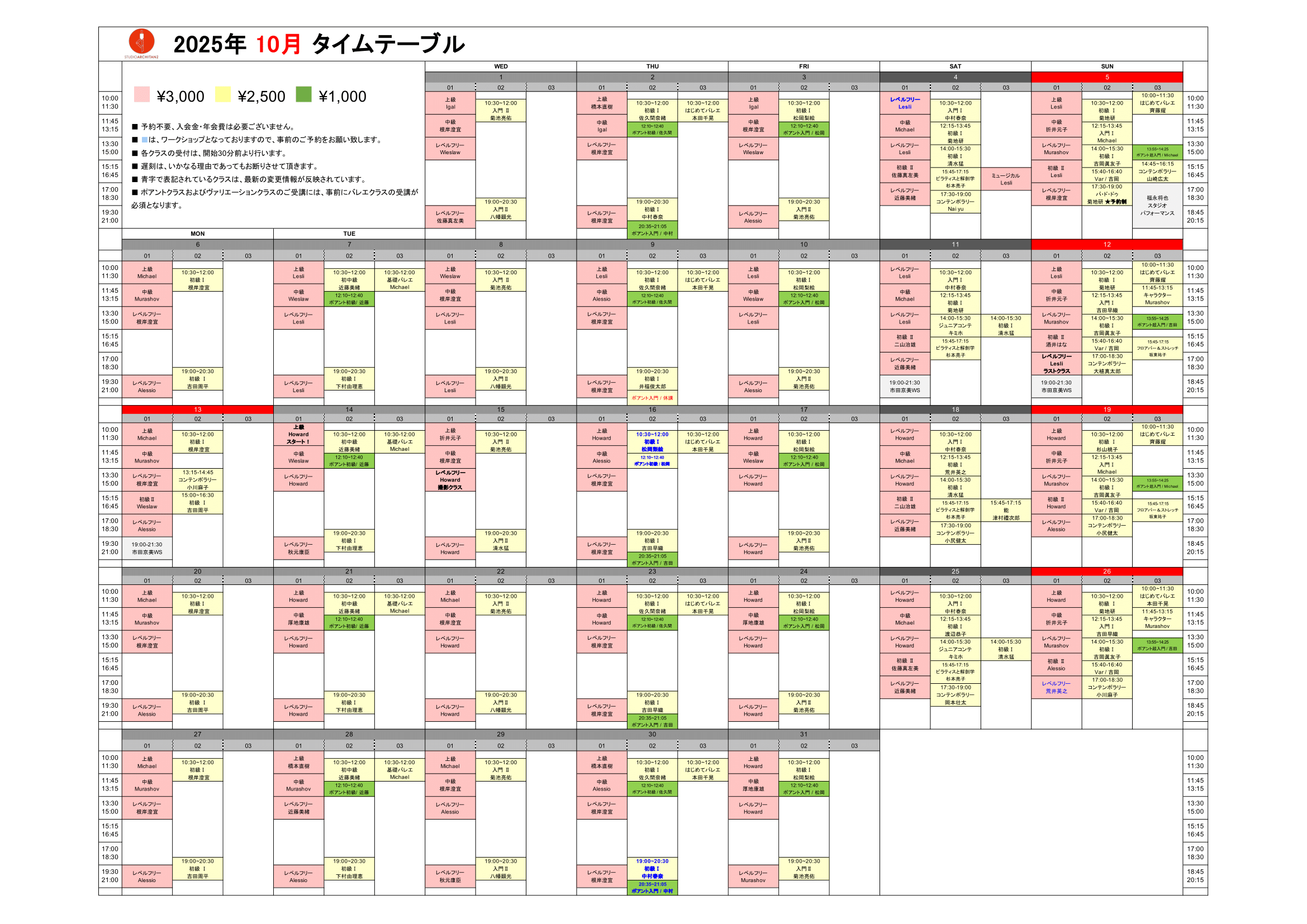 クラスレベル 講師 PDFで見る 休講・変更情報