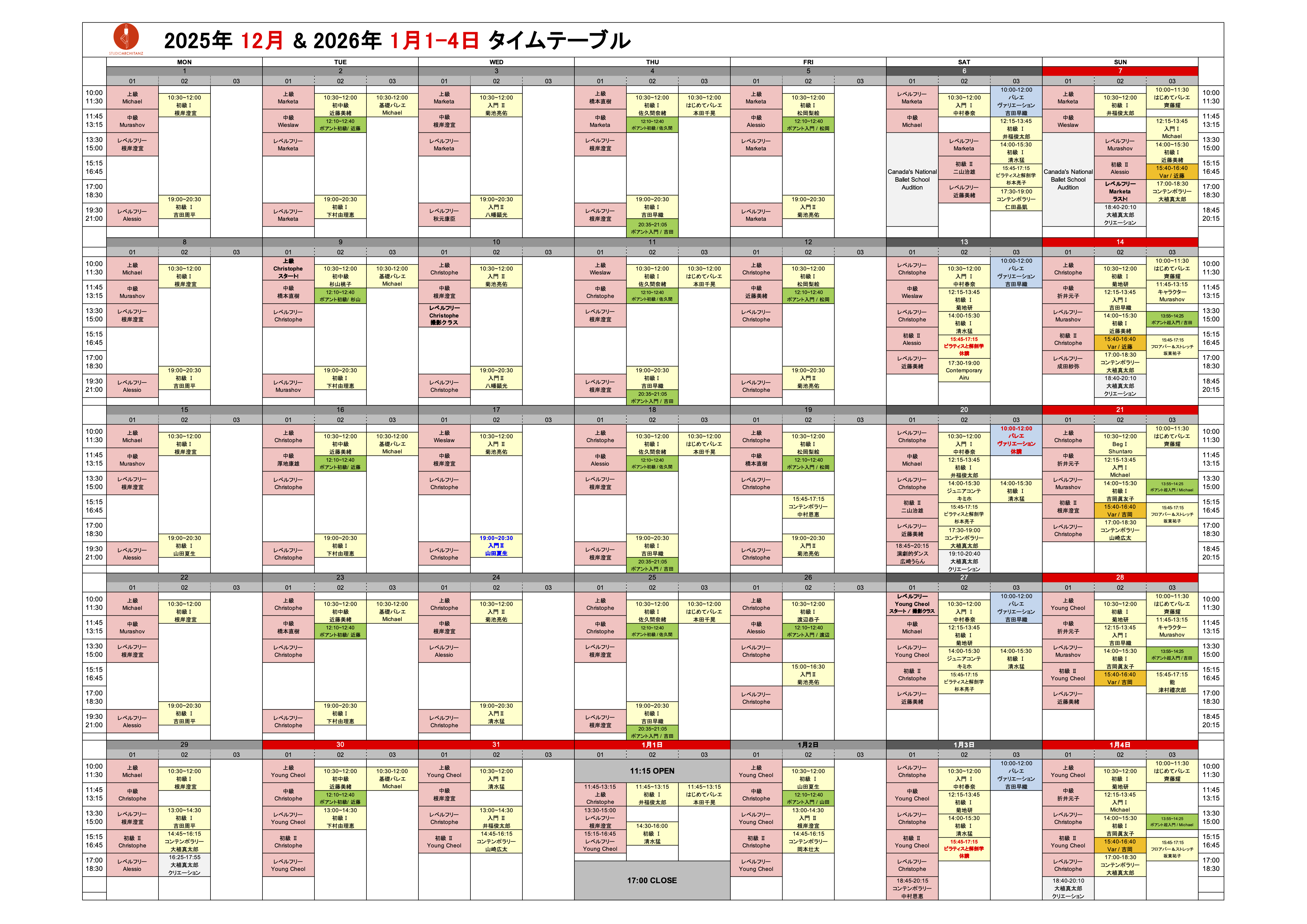 スケジュールは、やむを得ず変更となる場合がございます。ご了承下さい。
