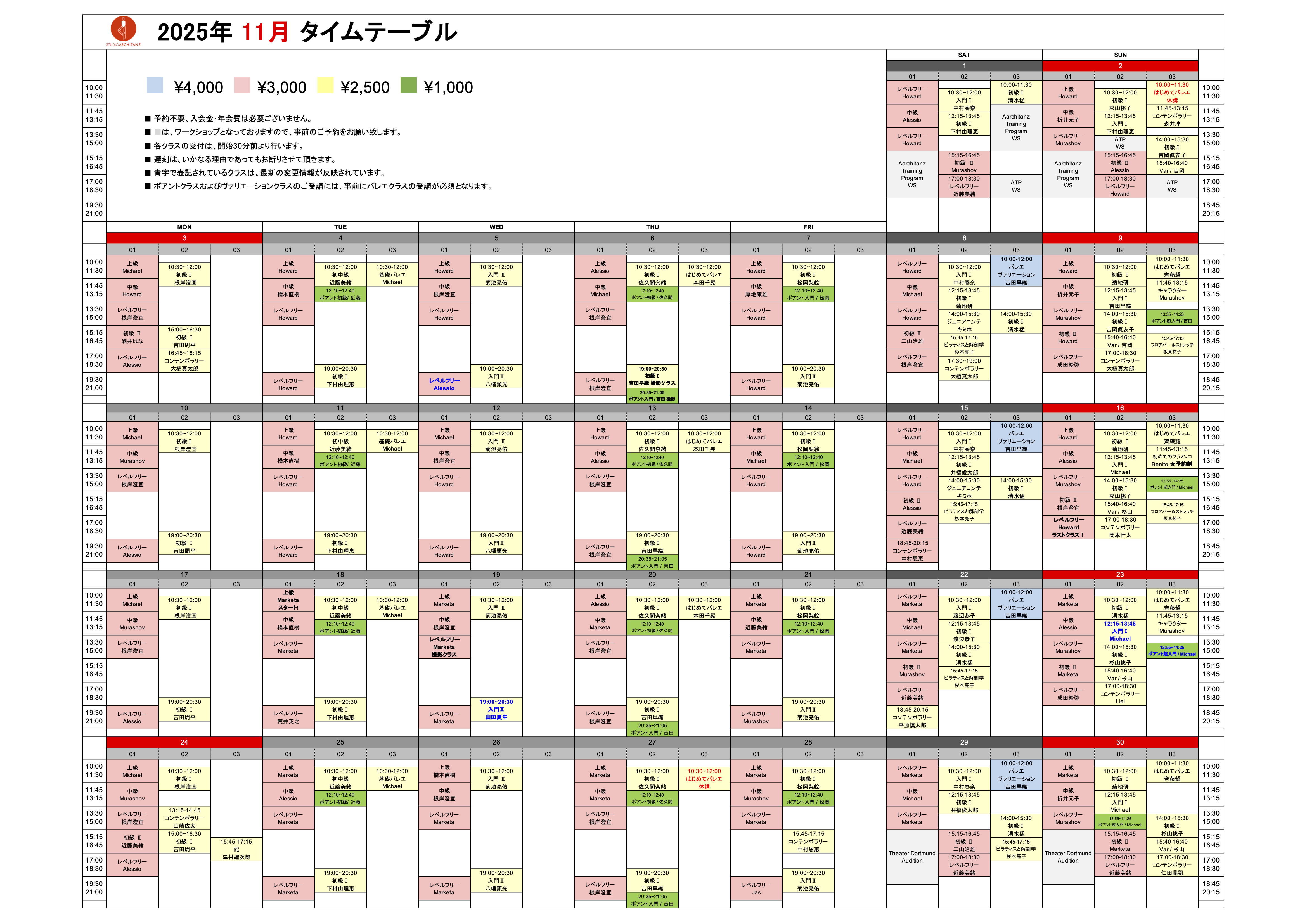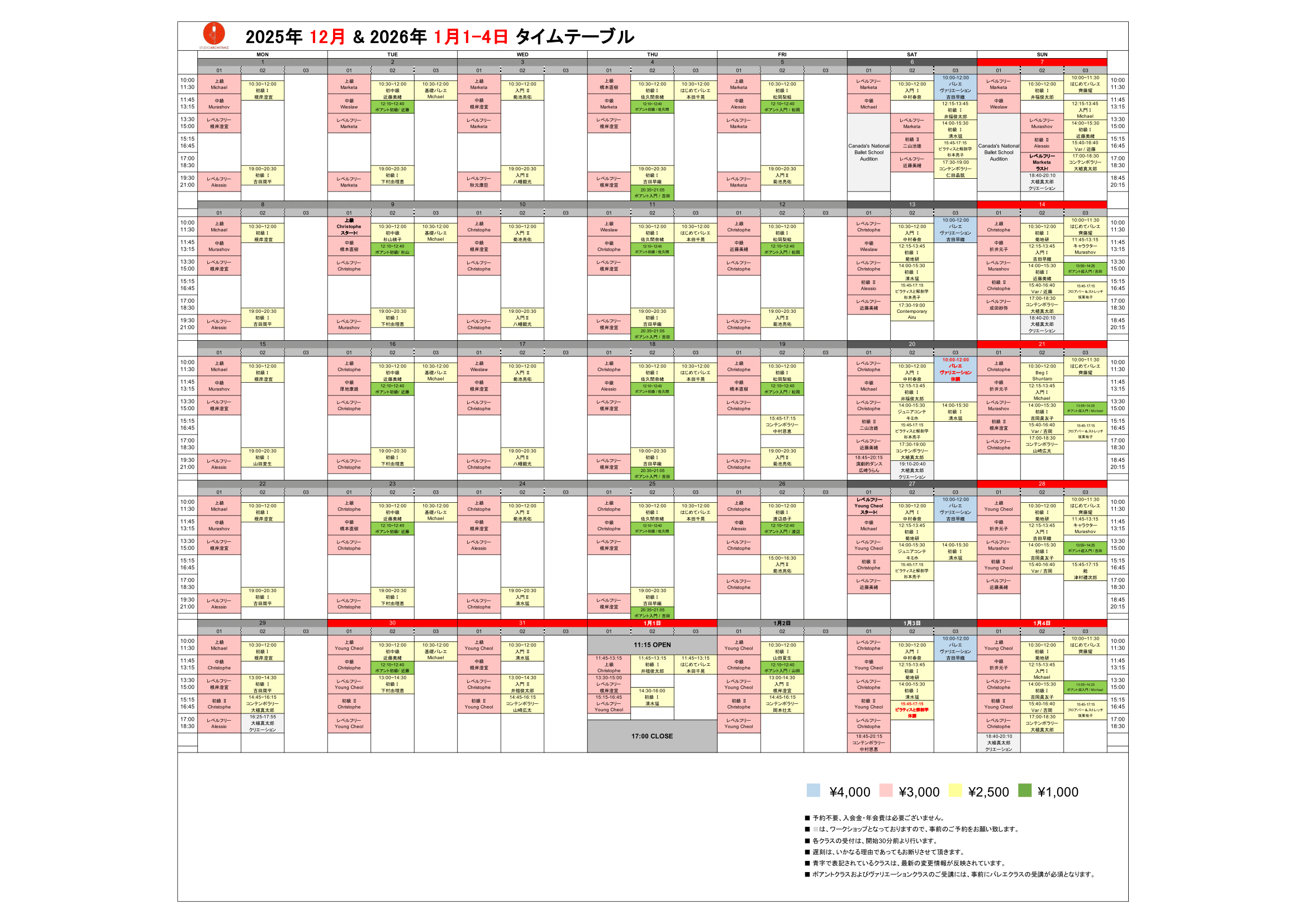 スケジュールは、やむを得ず変更となる場合がございます。ご了承下さい。