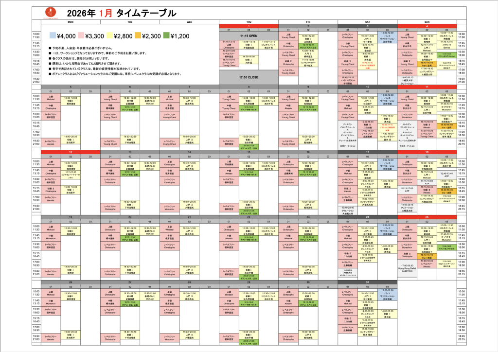 来月もレギュラークラスはもちろん、この機会でしか受講できない招聘講師のクラス、そしてスペシャルオープンクラスも盛り沢山となっております✨🎄